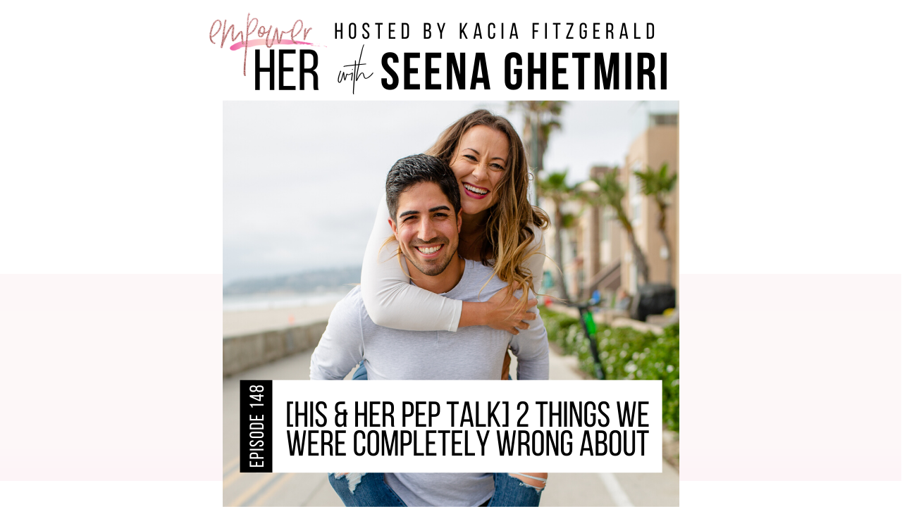 My fiance Seena is back again for another His & Her Pep talk today because I got a ton of awesome feedback from people who really vibe with our completely different brains that process things so uniquely! Today we are chatting about two things that we were totally wrong about. First, is this concept that one day you just arrive and you’ve made it, which is so not true! And second, is that inspiration is only based on accomplishment. We have each had our own experiences with these two concepts in totally different ways in our own careers & lives. I think you are going to really connect with our different perspectives and how we have navigated through them & I can’t wait to hear what you think & how this impacts you girl!